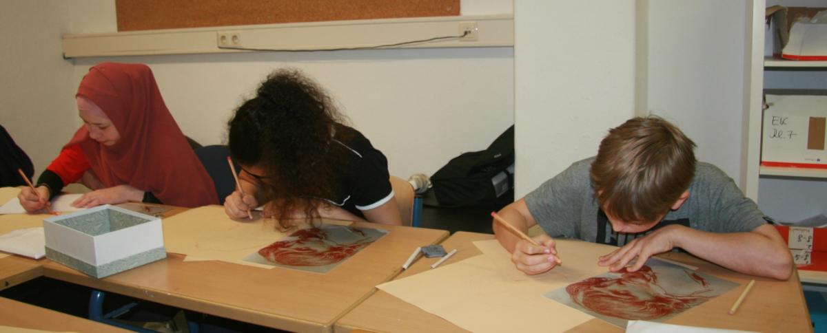 Es gibt an unserer Schule eine ganz besondere Arbeitsgemeinschaft: Herr Endrun zeigt in dieser AG Schüler*innen und Schülern, die einmal in der Woche Zeit und Konzentration mitbringen, welche Ideen die großen flämischen Meister in ihren Werken umgesetzt haben und welche Technik und welche Materialien sie verwendet haben. Vor allem aber lernen die Teilnehmer*innen Schritt für Schritt so zu malen, wie die großen Meister – und das in einer fast unglaublich kurzen Zeit. Auf dem Weg dahin ist es wirklich sehr beeindruckend, was bereits erstellt wurde!