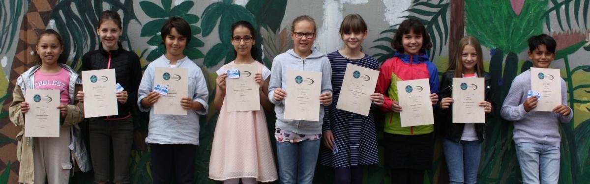 Vor allem aber kam man, um die besten, aber auch die sozial aktivsten, in Wettbewerben erfolgreichen, bei Streitschlichtung, ActionKidz, Schulsanitätsdienst, Streitschlichter*innen, Sporthelfer*innen etc. engagierten Schüler*innen, Läufer*innen im Marathon etc. aus allen Klassen zu würdigen – mit Urkunden, Preisen und Gutscheinen … Die ganze Schulgemeinde freut sich, dankt und gratuliert sehr herzlich !