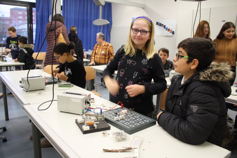 Auch in diesem Jahr war das Interesse der künftigen Fünftklässler und ihren Eltern sehr hoch. Mit vielen Mitmachaktionen, Stehcafés, Probeunterricht und Informationsständen war für klein und groß eine Menge zu sehen. In der Aula informierte Schulleiter Christof Haering die Eltern stündlich über das Profil und die Raumausstattung an unserer Schule. Impressionen vom Tag der offenen Tür finden Sie unten.