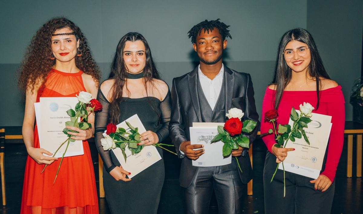Am 23.6.2022 haben unsere Abiturient:innen ihr Abitur gefeiert – mit einer berührenden multireligiösen Feier in der Aula, mit einer ganz schönen Abiturfeier im Stadttheater und mit einem wunderschönen Abiball in Ratingen. Hier zunächst 2 Bilder des Abiturjahrgangs: