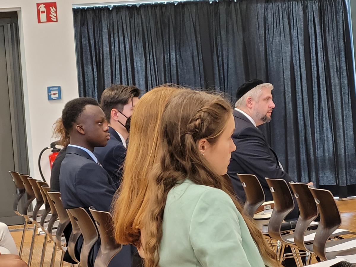 Zunächst Bilder der ganz bewegenden multireligiösen Feier mit Pater Herrman, Pfarrer Korn, Rabbiner Geballe und Frau Aksöz – vorbereitet von einem Team mit Frau Inhoffen – in unserer Aula am Morgen: