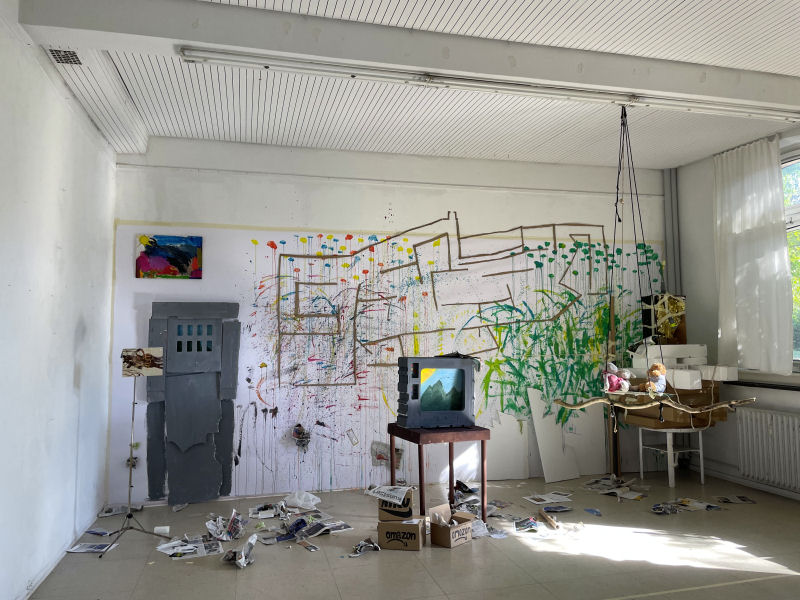 Die begehbare Installation, die alle Projektteilnehmer*innen gemeinsam für die Abschlusspräsentation am Anfang der Sommerferien entwickelt haben, zeigte das Chaos von Gefühlen, die Einflüsse und die Suche nach dem jeweils individuellen Weg zum persönlichen Glück auf ganz beeindruckende Weise.