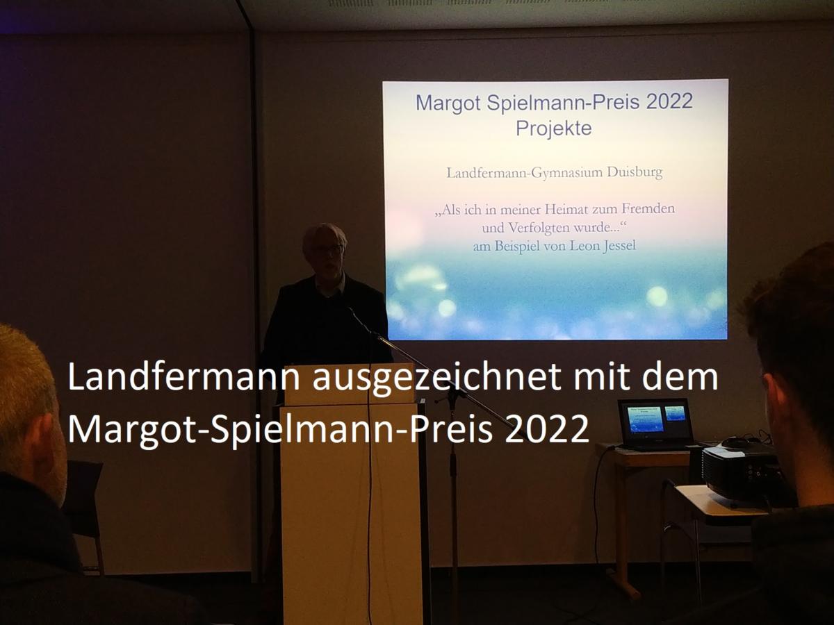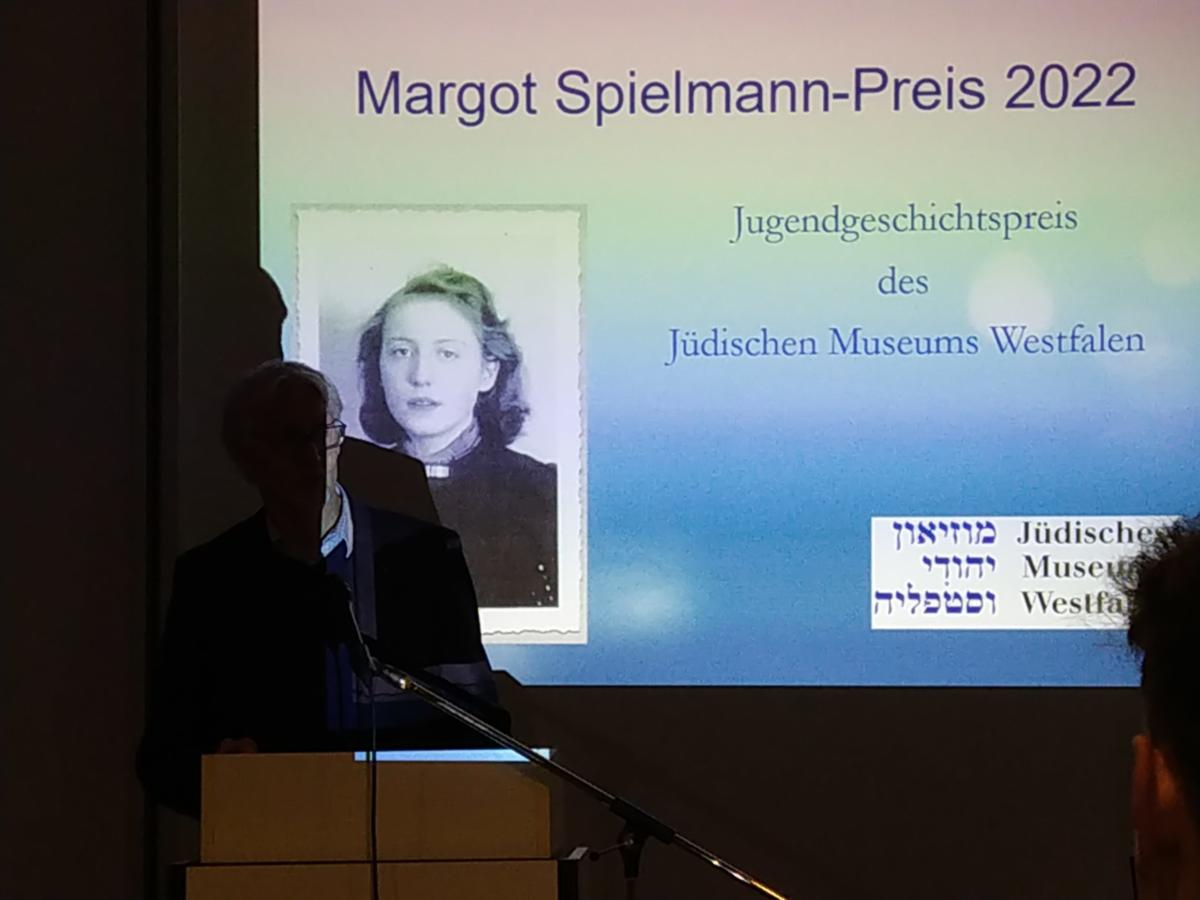 ich darf Ihnen mitteilen, dass die Jury entschieden hat, Ihr Projekt „Als ich in meiner Heimat zum Fremden und Verfolgten wurde...“ mit dem Margot Spielmann-Preis für Projekte 2022 auszuzeichnen.