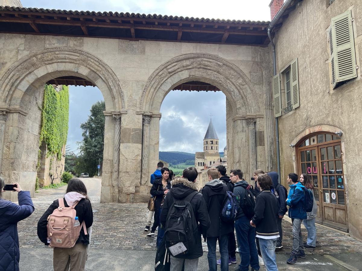 Am Donnerstag begaben sich die Schüler:innen auf Entdeckungsreise im schönen und sehr geschichtsträchtigen Cluny. Neben der romanischen Architektur des Ortes begutachteten unsere LfGler die Überreste der Abtei von Cluny – des Benediktinerklosters, welches heute zum UNESCO-Weltkulturerbe gehört und im 11. Jahrhundert eines der einflussreichsten religiösen Zentren Europas war. Da die Abenteuerwanderung am Nachmittag aufgrund des anhaltenden Regens abgesagt werden musste, fanden sich alle Schüler:innen in der Sporthalle ein, um gemeinsam mit ihren Austauschpartner:innen, angeleitet vom französischen Sportlehrer, u.a. einige Partien Völkerball zu spielen.