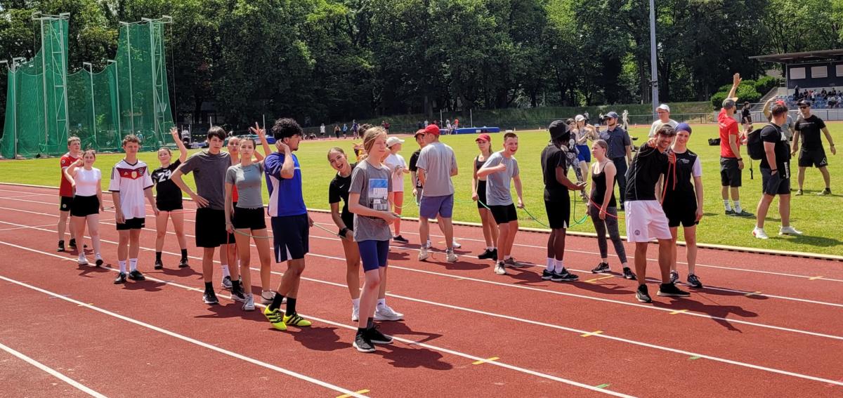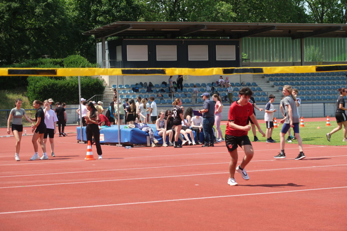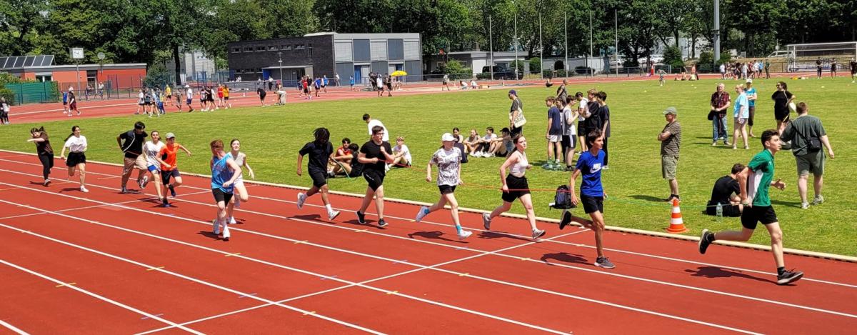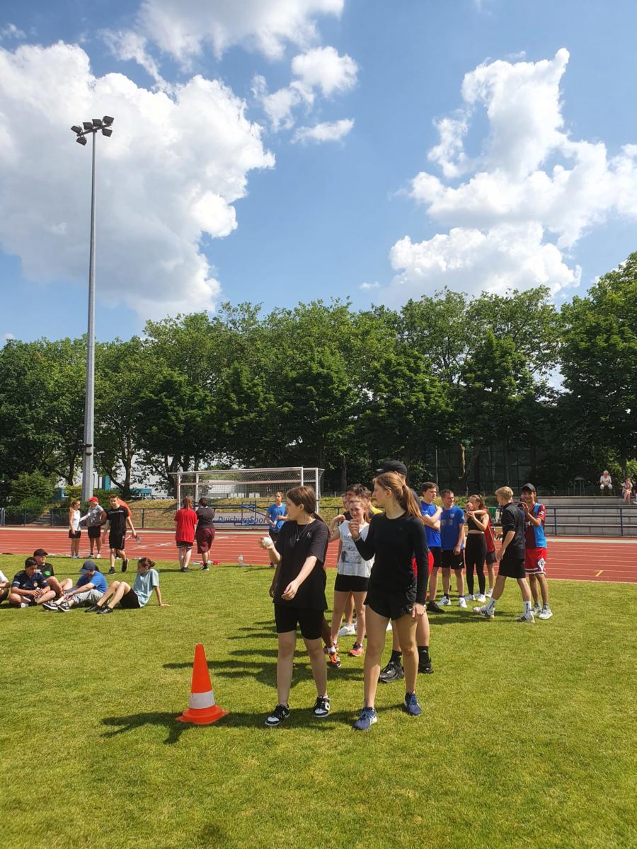 Bei strahlendem Wetter trafen sich am Donnerstag, dem 15.6.2023, alle Schüler*innen – die Sekundarstufe 1 in Wettbewerben, die Q1 als Kampfrichter*innen – und alle Lehrkräfte als Begleiter*innen, um im Leichtathletikstadion unser großes Sportfest zu feiern.