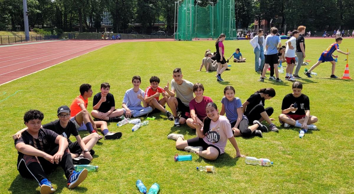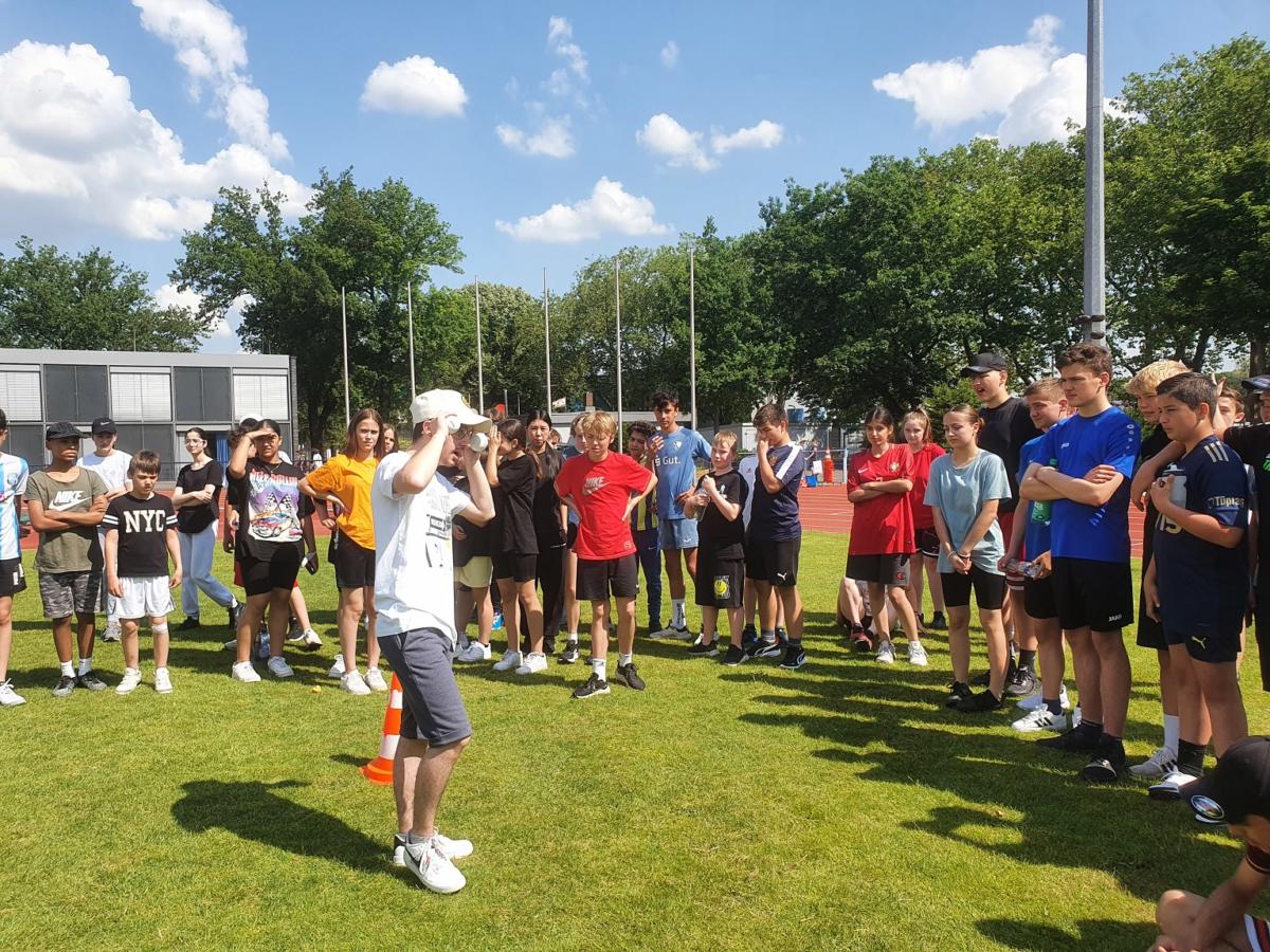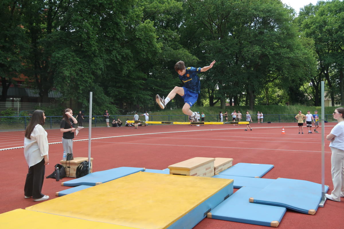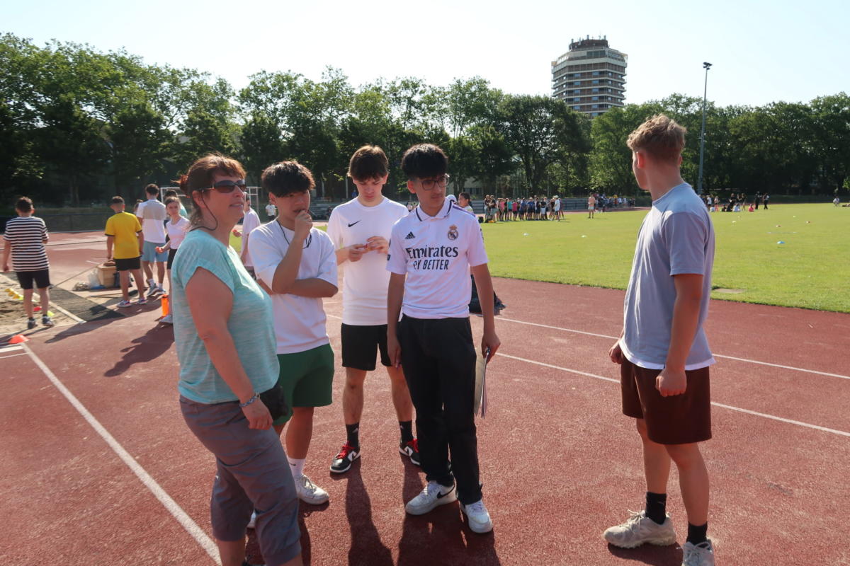 Bei strahlendem Wetter trafen sich am Donnerstag, dem 15.6.2023, alle Schüler*innen – die Sekundarstufe 1 in Wettbewerben, die Q1 als Kampfrichter*innen – und alle Lehrkräfte als Begleiter*innen, um im Leichtathletikstadion unser großes Sportfest zu feiern.