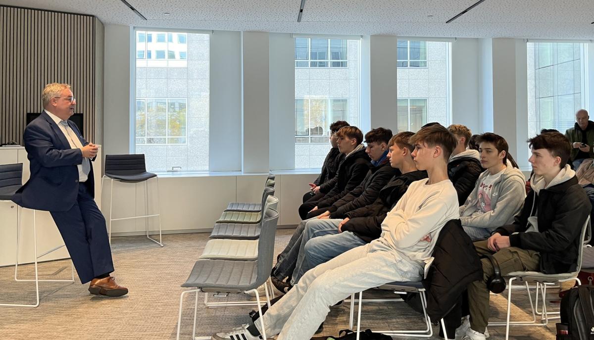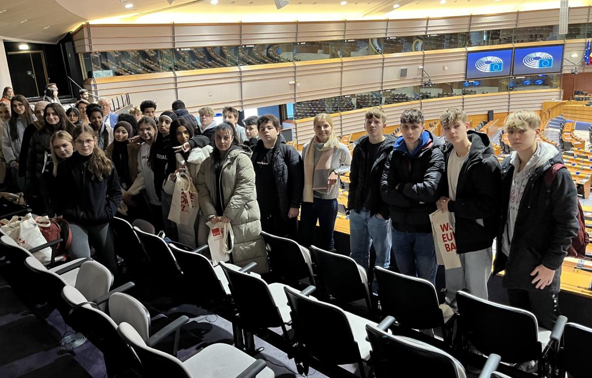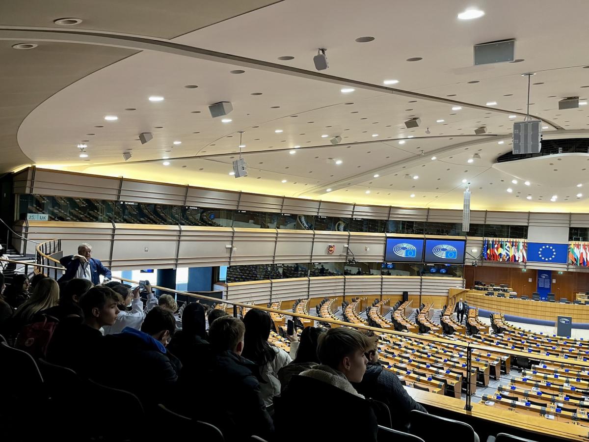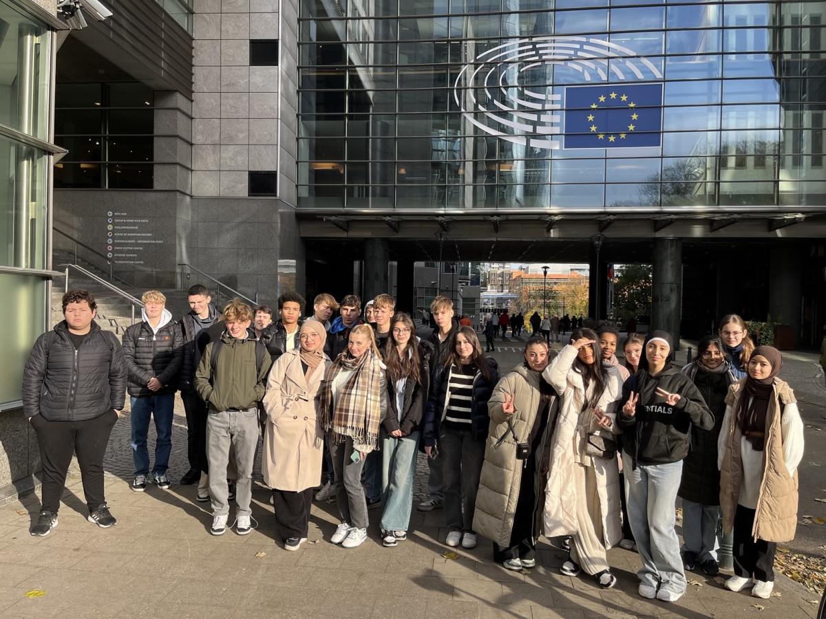 Am Mittwoch, dem 8.11.2023, besuchte die Klasse 10b in Begleitung von Frau Tromnau und Frau Edler das Europäische Parlament und das Parlamentarium in Brüssel. Die Fahrt fand in Zusammenarbeit mit EUROPE DIRECT Duisburg-Niederrhein statt, welche das Pilotprojekt “Demokratie leicht gemacht – Ein Modellprojekt zur Bekämpfung des Wahlabsentismus“ initiiert hat.