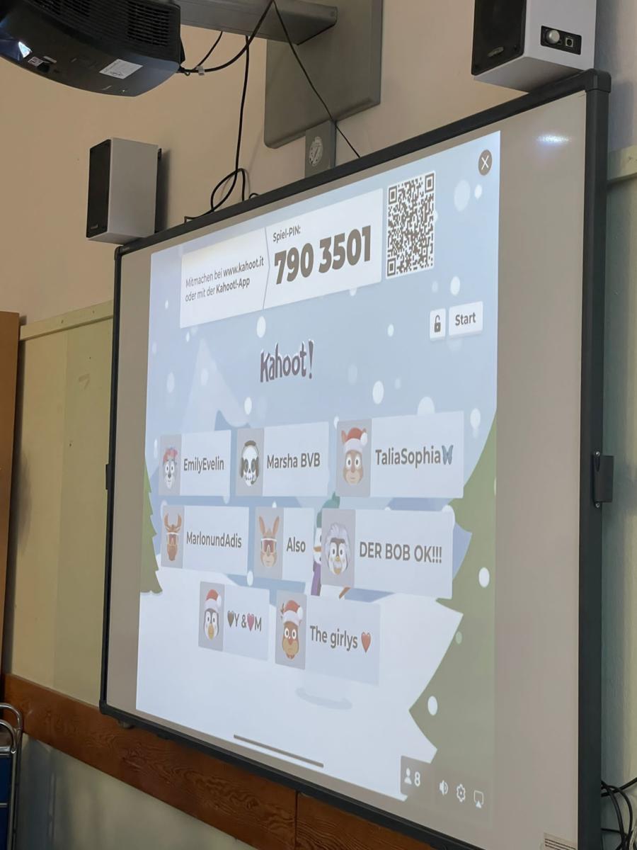 Wir waren in der Vorweihnachtszeit unterwegs und haben am Montag, den 18.12. unsere Dependance an der Gneisenaustraße in Neudorf besucht und mit unseren Fünftklässlern am Dienstag, den 19.12. gemeinsam Weihnachtslieder gesungen und die Zeit mit Kahoot-Quizzes interaktiv gestaltet.