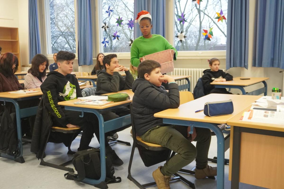 Wir, die SV-Mitglieder Anni, Florian, Martin und Miriam, waren gemeinsam mit Maja und Meran aus der Reporter-AG an der Gneisenaustraße und wir haben uns mit den IVK- Klassen bekannt gemacht, uns vorgestellt und Schülerinnen und Schüler rekrutiert, die an einer Schülervertretung dort interessiert wären. Der Besuch war auch eine Chance für uns die Gneisenaustraße näher kennenzulernen und haben eine bemerkbare Sprachbarriere erlebt, da auch Englisch nicht für alle verständlich war. Glücklicherweise hatten wir Maja und Meran dabei, die sich auf polnisch und kurdisch unterhalten und übersetzten konnten. Natürlich hatten wir auch Snacks und Süßes für die Klassen dabei und wir haben das beste aus dem Besuch gemacht.