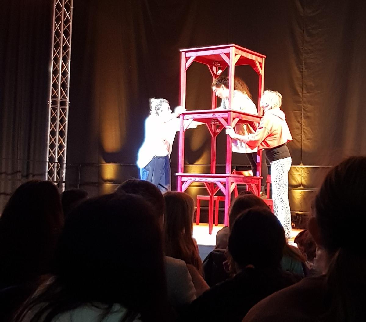 Die Schülerinnen und Schüler waren besonders davon beeindruckt, dass die Schauspielerinnen viele verschiedene Rollen gespielt haben. Beide Aufführungen in unserer Aula waren ein voller Erfolg.