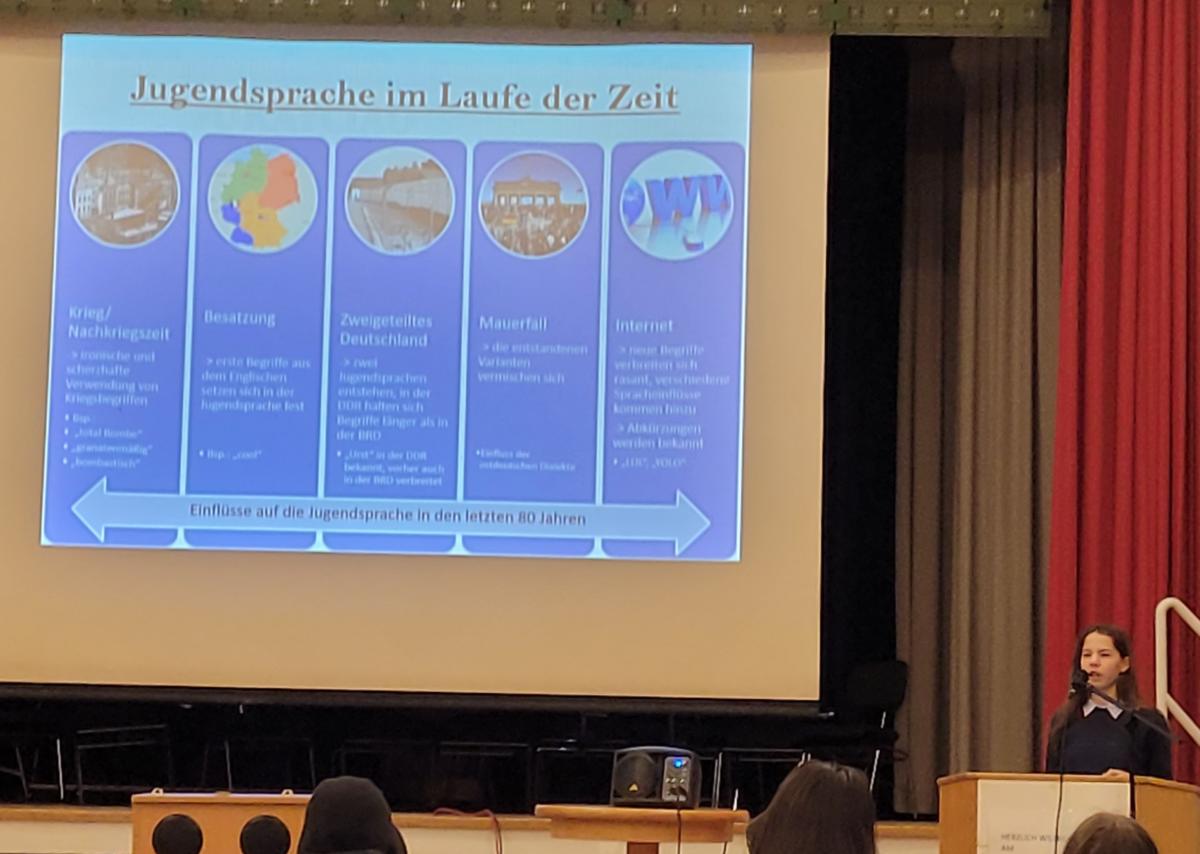 Zum mittlerweile fünften Male präsentierten Schülerinnen die Ergebnisse ihrer Projekte am 25.1.2024 in der Aula des LfG II – alleine, ohne Regie der Lehrer:innen, vor großem Publikum … wirklich ganz beeindruckend. Und ein großer Dank an Frau Heinrich und Frau Basha für alle Vorbereitung, die Organisation und vor allem Begleitung; auch der Sammelband, in dem die Entstehung beschrieben wird, ist wieder wirklich sehr schön geworden.