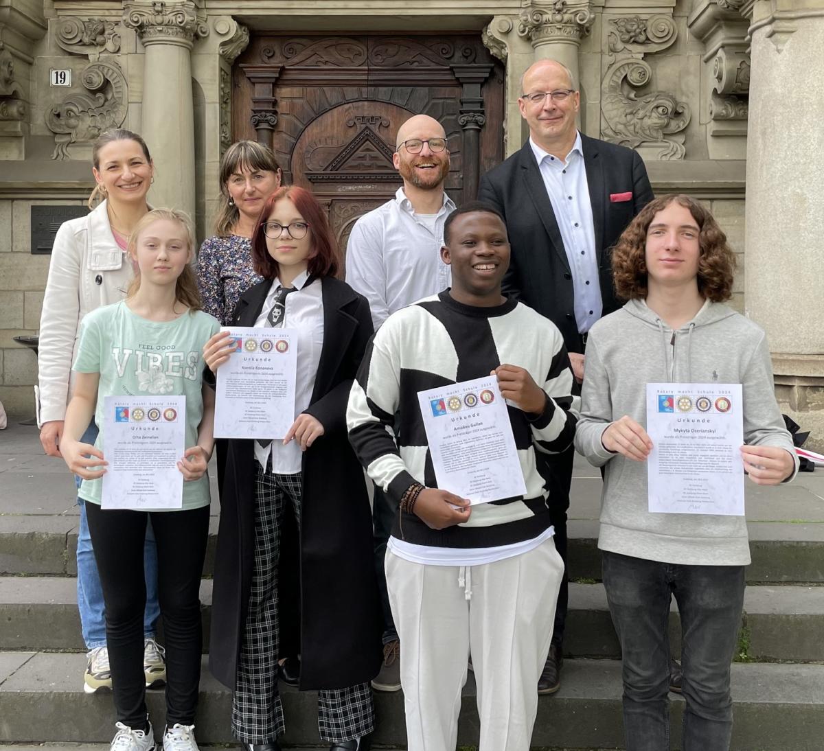 Zusammen mit 9 Schüler:innen anderer Duisburger Schulen wurden 4 Schüler*innen aus unseren verschiedenen internationalen Klassentypen am Dienstag dem 29.5.2024 in Anwesenheit von