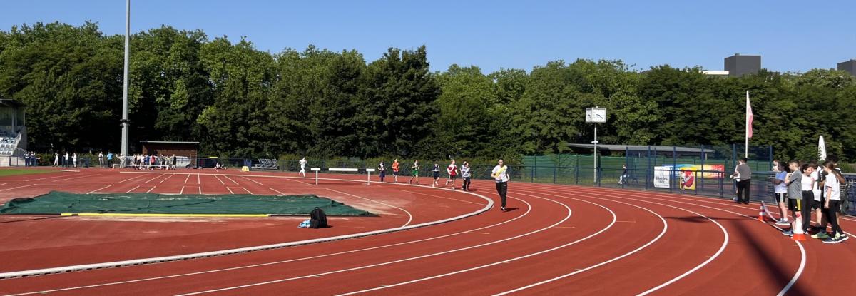 Bei erneut strahlendem Wetter trafen sich am Montag, dem 24.6.2024, Schüler*innen und Lehrkräfte als Begleiter*innen, um im Leichtathletikstadion durch Läufe Sponsoren zu gewinnen, die vorher ihre Bereitschaft erklärt haben, für viele Klassenrunden zu spenden. denn das war neu: Es ging nicht um Einzelläufe, sondern um die ganze Klasse.