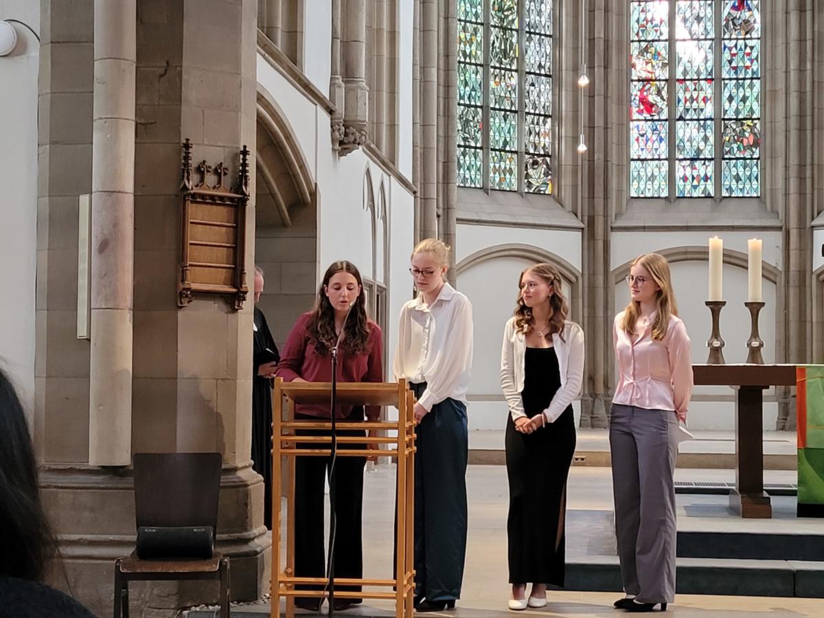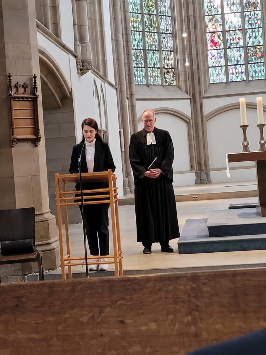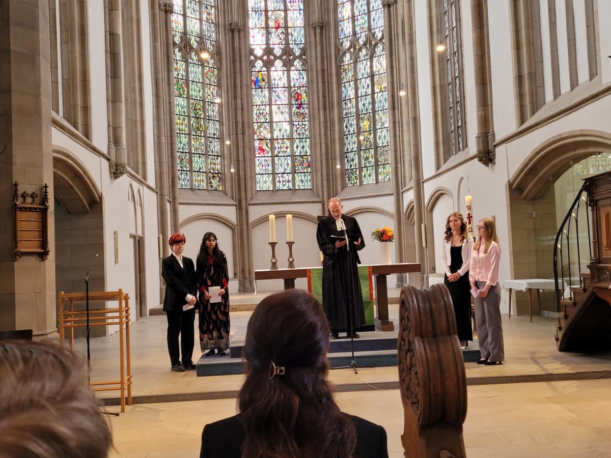Zunächst Bilder des Gottesdienstes mit Pfarrer Korn, Frau Aksöz und einem tollen Schülerinnenteam am Morgen:
