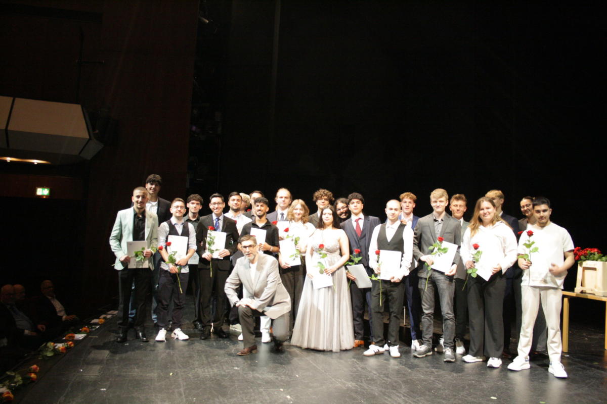 Wir haben insgesamt 117 Schüler*innen (die bestanden haben), nicht zugelassen wurde 1 Schüler:in, 5 Schüler*innen haben leider nicht bestanden, haben aber alle die Fachhochschulreife. Der Abi-Durchschnitt ist 2,41 – – und es hat ganz tolle Ergebnisse gegeben: