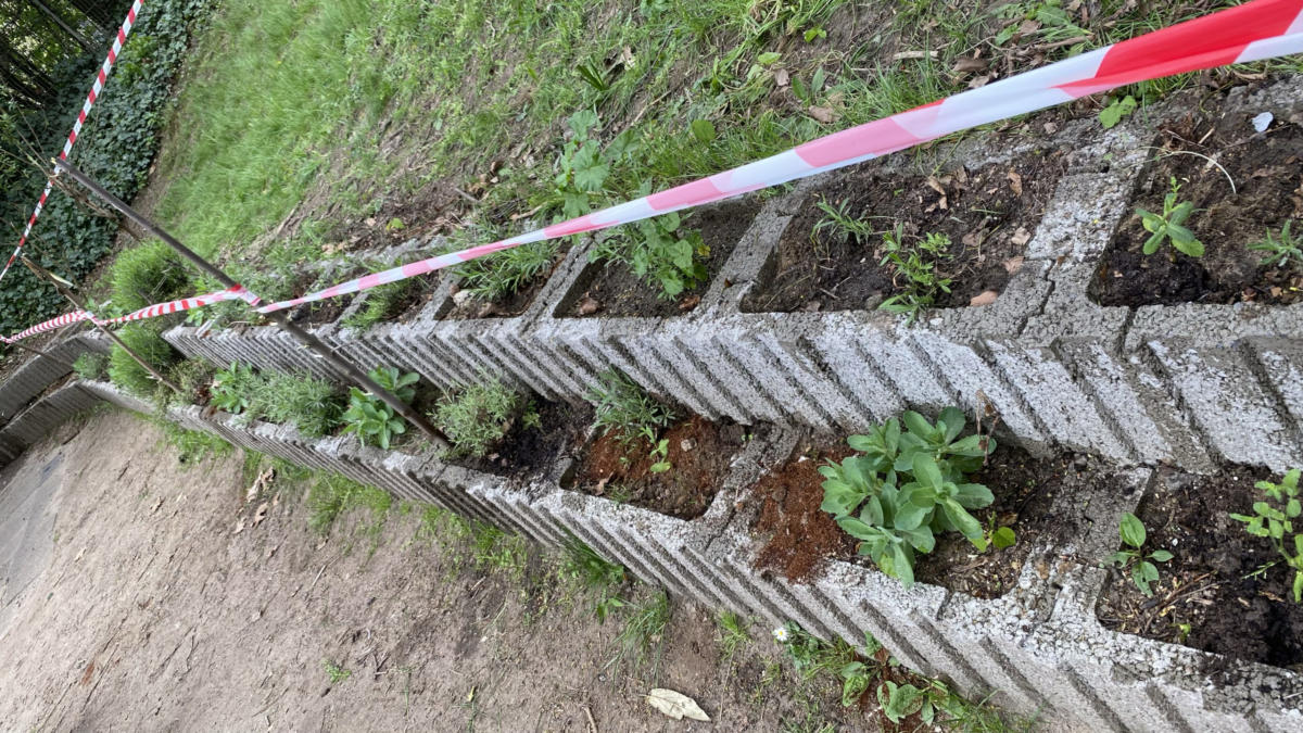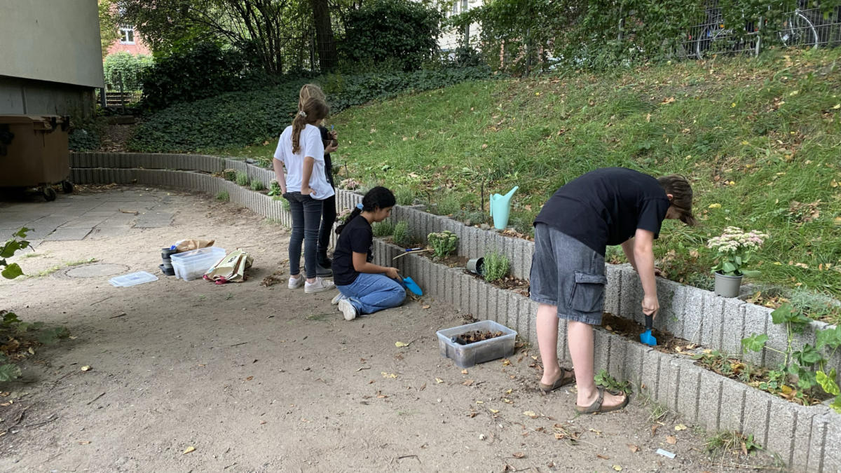 - Die Bepflanzung des Hangs auf dem Schulhof des LfG I