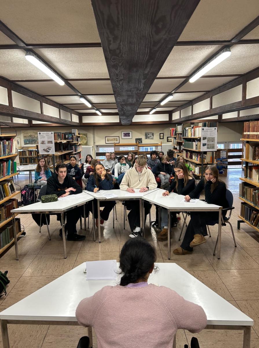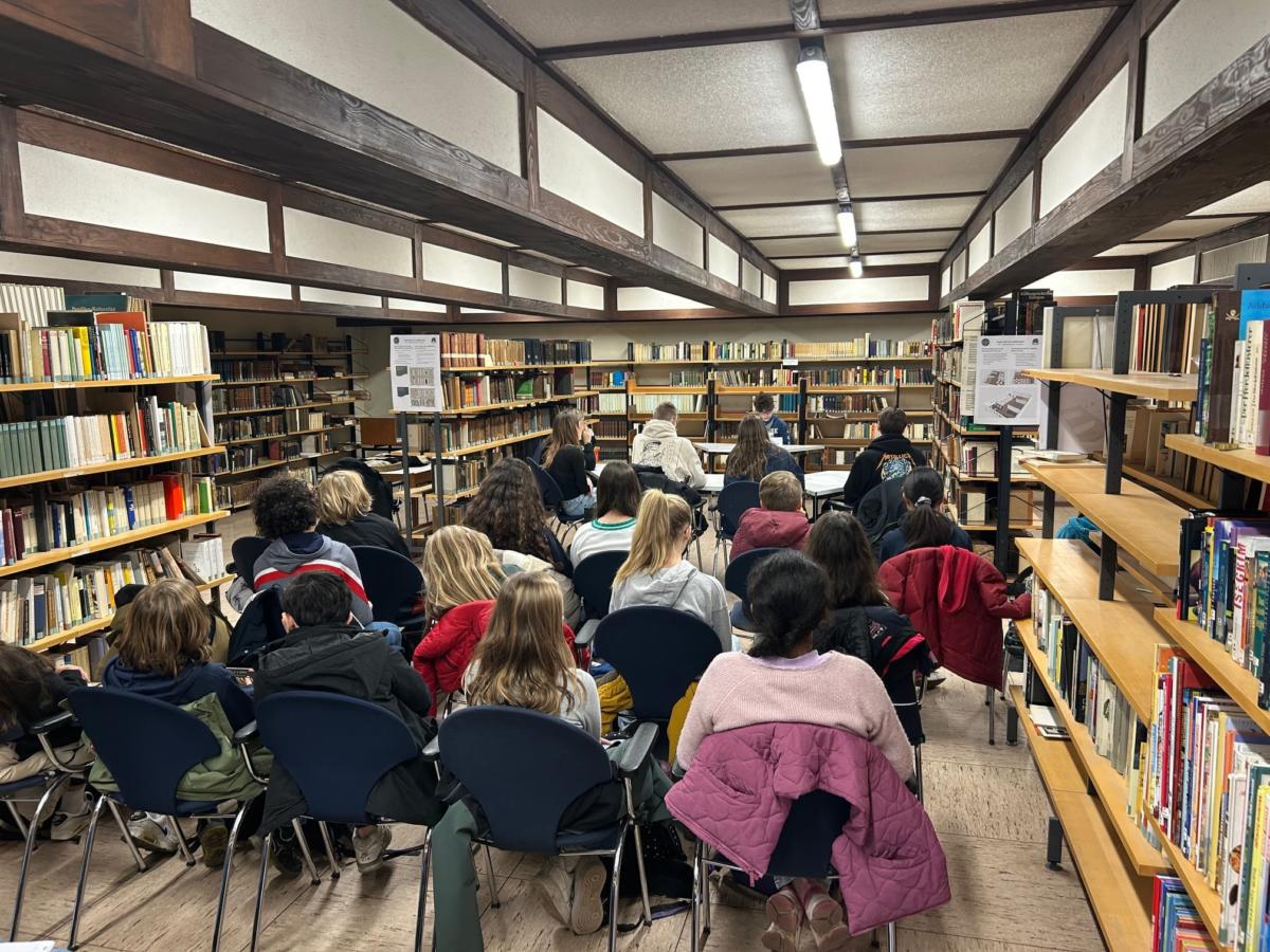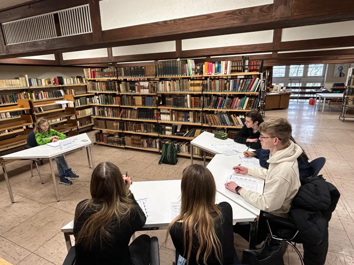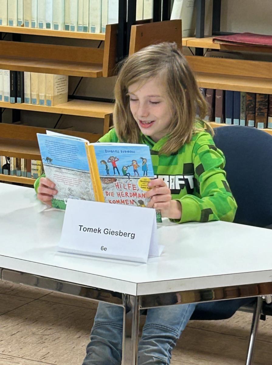 Auch dieses Jahr gab es wieder den Vorlesewettbewerb der 6sten Klassen in der Schulbibliothek. Sechs Klassenbeste lasen vor und wurden jeweils von den Zweitplatzierten und einer Mitschülerin/einem Mitschüler ihrer Wahl als Publikum unterstützt. Die Jury (vielen Dank an die fünf Schüler:innen der EF!) versicherte einhellig, dass dieses Jahr besonders starke Konkurrenz gegeneinander gelesen hätte.