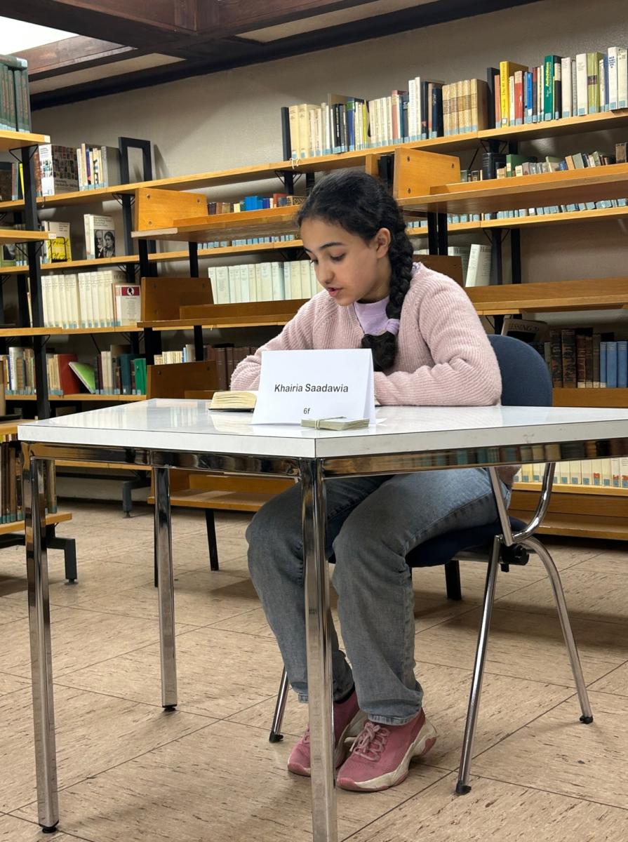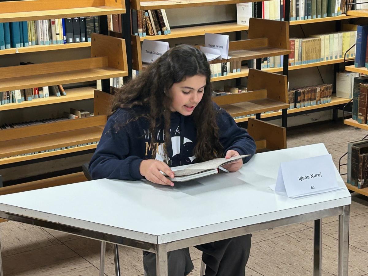 Wir gratulieren Khairia Saadawia (6f) zum Sieg beim Bezirksentscheid im diesjährigen Vorlesewettbewerb. Nachdem sie bereits beim Kreisentscheid die Jury überzeugen konnte, las Khairia am vergangenen Mittwoch, dem 2.4.2025, in der Stadtteilbibliothek Oberhausen-Sterkrade gegen eine wirklich starke Konkurrenz überragend gelesen und wurde auch hier zur Siegerin gekürt. Die Moderatorin sprach zurecht davon, dass ihr Beitrag „Hörbuchqualität“ hatte. Sowohl die Textstelle aus ihrem selbstgewählten Buch „Die Wunderfabrik“ als auch den durchaus anspruchsvollen Fremdtext aus dem Roman „Catacombia“ las sie mit angenehmer, wunderbarer Betonung und klarer Aussprache so vor, dass es für das zahlreiche Publikum eine Freude war zuzuhören.