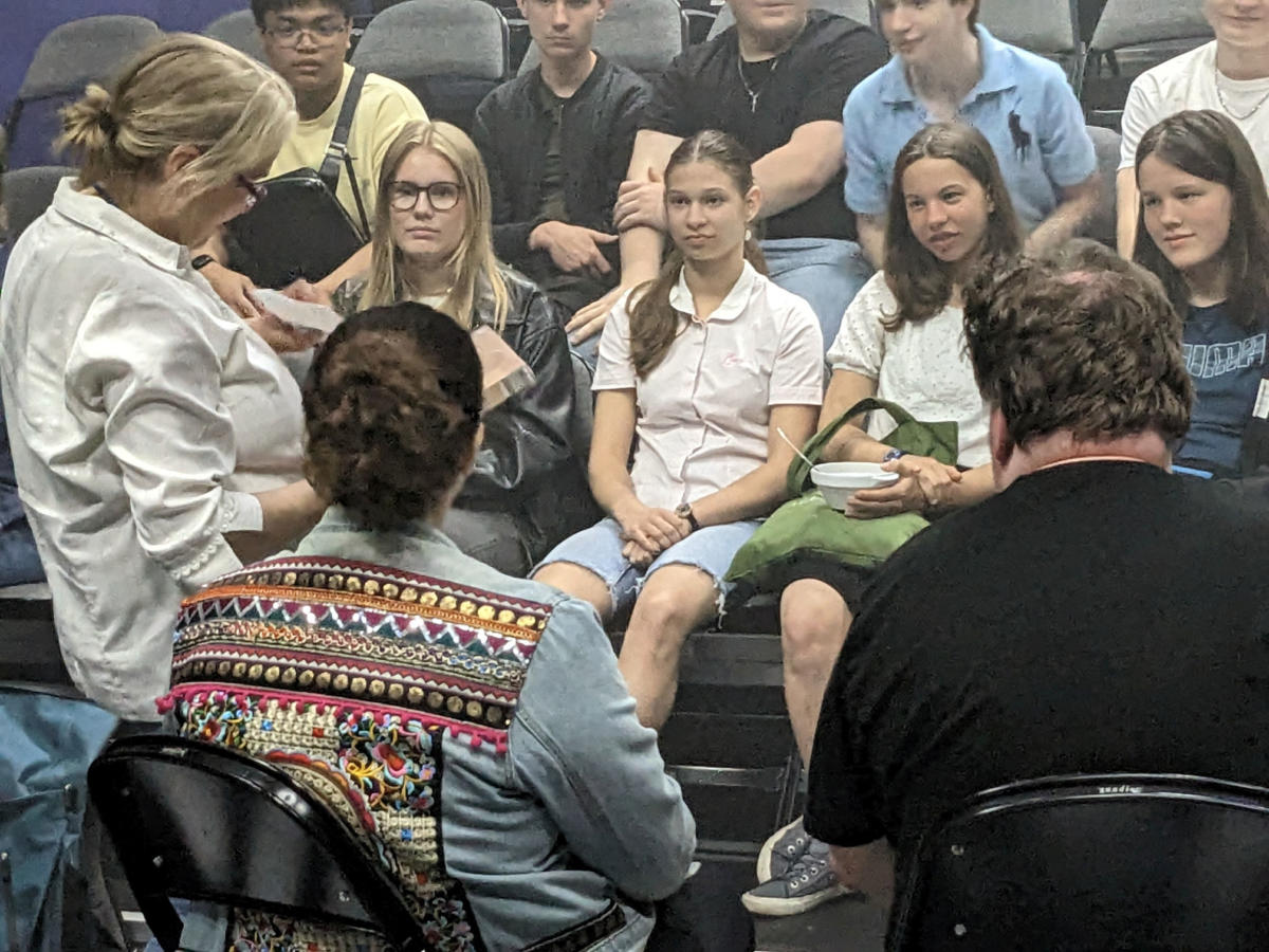 Wie schon berichtet sind wir als Premierenklasse im Komma-Theater in den Genuss von Workshops und Einführungen von Bühnenbild, Ton und Licht gekommen. Am Freitag war nun Premiere – und unsere Erwartungen wurden übertroffen. In achtzig Minuten dichter Inszenierung nahmen uns die Schauspielerinnen Tamara Hermanns und Laura Vorgang in die Welt der Anne Frank mit. Wie das ausgeht, weiß jeder. Das Stück ist aber auch: Eine Hommage an die Unterstützer der Familie Frank und damit eine Ode an die Zivilcourage. Wir empfehlen es euch unbedingt und freuen uns, dabeigewesen zu sein. Im Anschluss an das Stück hatten wir noch Gelegenheit zu einem Talk mit Regisseur René Linke und Schauspielerin Laura Vorgang.