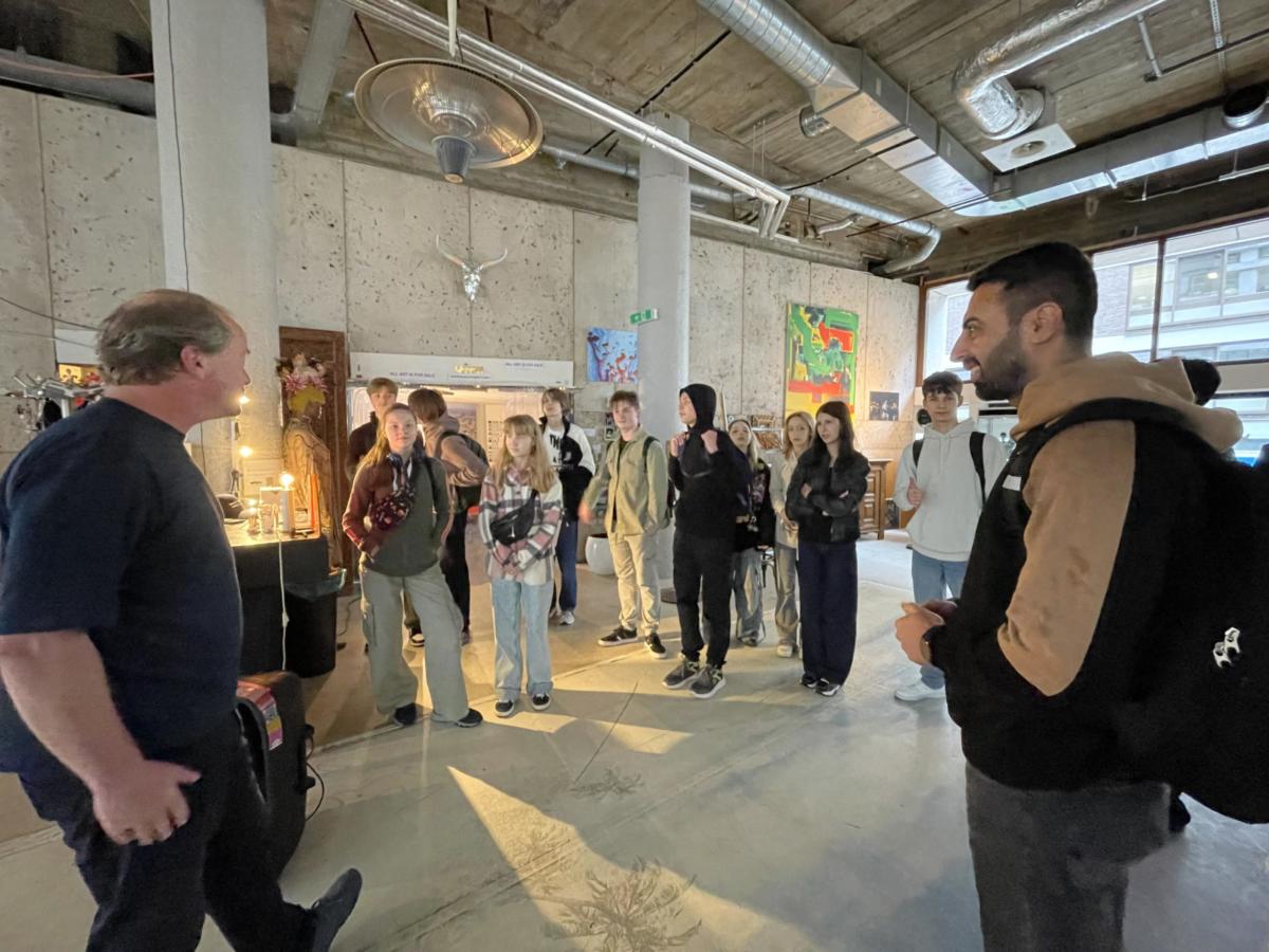Ein besonderer Programmpunkt war der Besuch der außergewöhnlichen Galerie „What Is Happening Here?“ (WIHH). Die Galerie befindet sich in einem ehemaligen Bankgebäude und stellt auf einer Fläche von 2.200 m² über mehrere Etagen vielfältige Kunst aus und lädt die Besucher zu interaktiven Erlebnissen ein. Die Kinder begegneten den ausgestellten Werken mit großem Interesse und hatten sichtlich Freude daran, sich in der großen Halle zu bewegen. Neben der Auseinandersetzung mit der Kunst nutzten einige die offene Atmosphäre auch zum gemeinsamen Spielen, wie zum Beispiel Verstecken, was für viel Begeisterung sorgte. Nach dem Galeriebesuch hatten die Schülerinnen und Schüler noch etwa eine