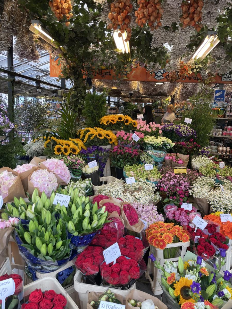 Unser Rundgang führte uns zunächst zur Alten Kirche (Oude Kerk), der ältesten Kirche Amsterdams. Anschließend gingen wir vorbei an den schönen Grachten und kleinen Brücken bis zum Dam-Platz. Der Dam-Platz liegt im Herzen der Altstadt und bildet das Zentrum von dem aus sich viele Straßen verzweigen. An diesem zentralen Ort befinden sich viele Sehenswürdigkeiten, die wir gemeinsam von außen besichtigten, wie z.B. den Königlichen Palast, die Neuen Kirche (Nieuwe Kerk), das Nationalmonument, das Madame Tussauds Wachsfigurenkabinett, sowie das De Bijenkorf Kaufhaus. Im Anschluss besuchten wir den bekannten Blumenmarkt, wo die Schülerinnen und Schüler in Kleingruppen Souvenirs kaufen konnten. Der Marktbesuch war für viele ein Highlight, da sie sich dort frei bewegen und Eindrücke vom lokalen Angebot sammeln konnten.