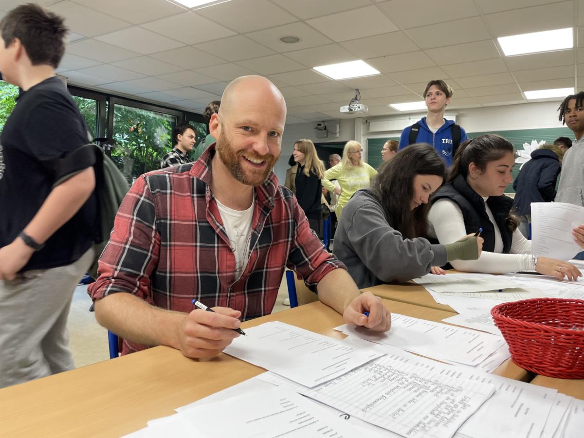 Die größte Gruppe an der Schule sind zwar momentan ukrainische Schüler*innen, aber etwas weniger als die Hälfte der Schüler kommen aus sämtlichen anderen Ländern der Welt und werden nach dem gleichen Prinzip und in den gleichen Klassen unterrichtet. Er erzählt uns, dass die Sprachbarriere kein großes Problem sei, sogar eher im Gegenteil den Schülern beim Lernen helfe, da sie sich dann auf Deutsch verständigen würden