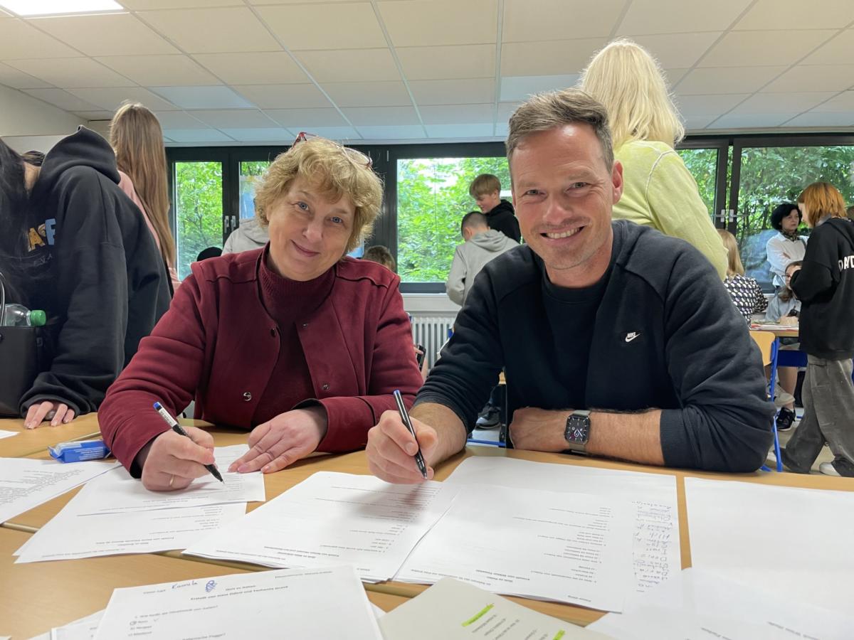 Endlich ist die Vertragsverlängerung da. alle Schüler*innen in den beschleunigten Gruppen werden jetzt wieder Hauptschüler*innen der GHS Ludgerusstraße – und die Lehrkräfte werden entsprechend abgeordnet – sogar unser Schulleiter Herr Haering erneut – damit der schnelle Übergang direkt in die Ausbildungsgänge der Berufskollegs gelingt – uf dass alle Schüler*innen in den ESA-Klassen den ESA auch erwerben.