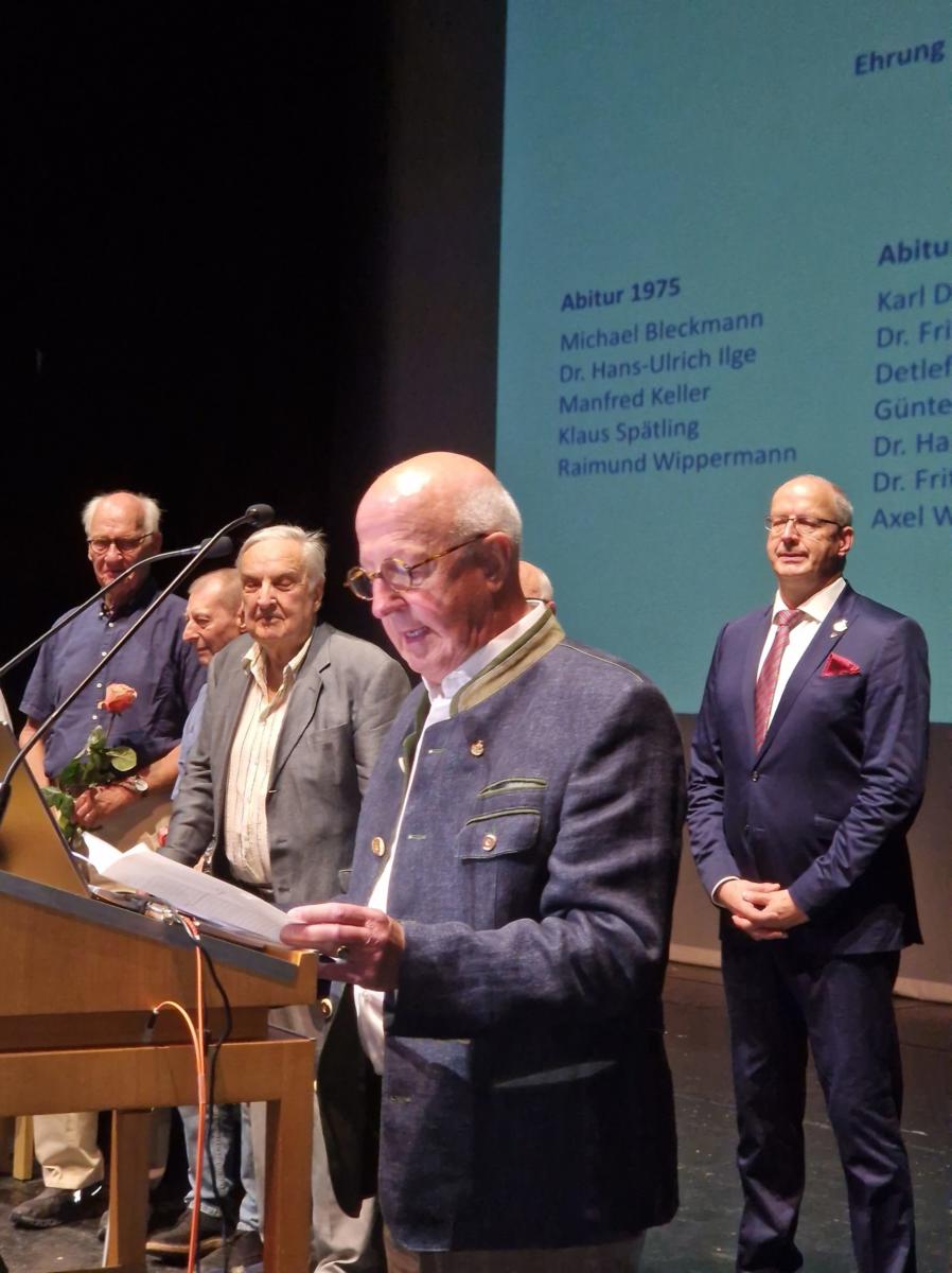 Hier zunächst die Bilder der Abiturfeier am Morgen mit der Übergabe der Abiturzeugnisse und der Ehrung der Altabiturientia – 50 Jahre, 60 Jahre und sogar 70 Jahre Abitur am Landfermann:
