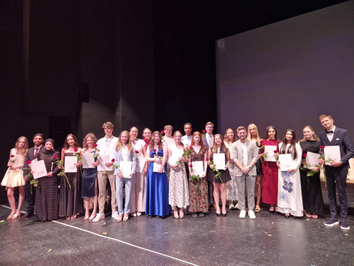 Am 2.7.2025 haben unsere Abiturient:innen ihr Abitur gefeiert – mit einem berührenden multireligiösen Gottesdienst in der Kirche St. Ludgerus in Neudorf, mit einer ganz schönen Abiturfeier im Stadttheater und mit einem besonderen Abiball in Ratingen am Abend.