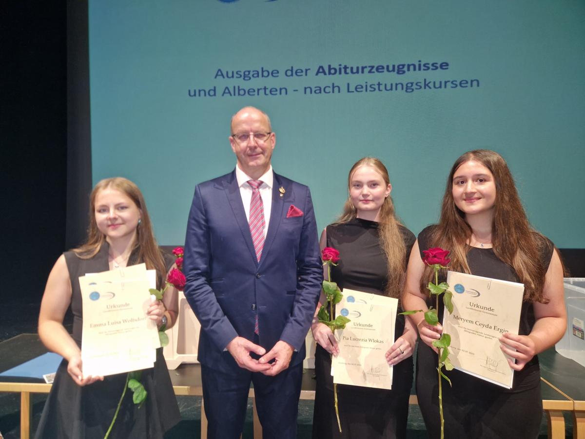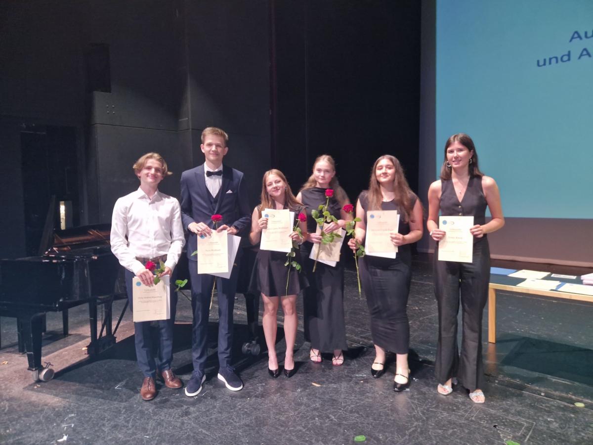 Neben sechs 1,0-Abiturzeugnissen sind für Energie und Kampfgeist sind auch die 12 Schüler*innen hervorzuheben, die in die Nachprüfung mussten – und von denen 6, also 50 %, noch bestanden haben – zum Teil unter Aufholen sehr großer Abstände!