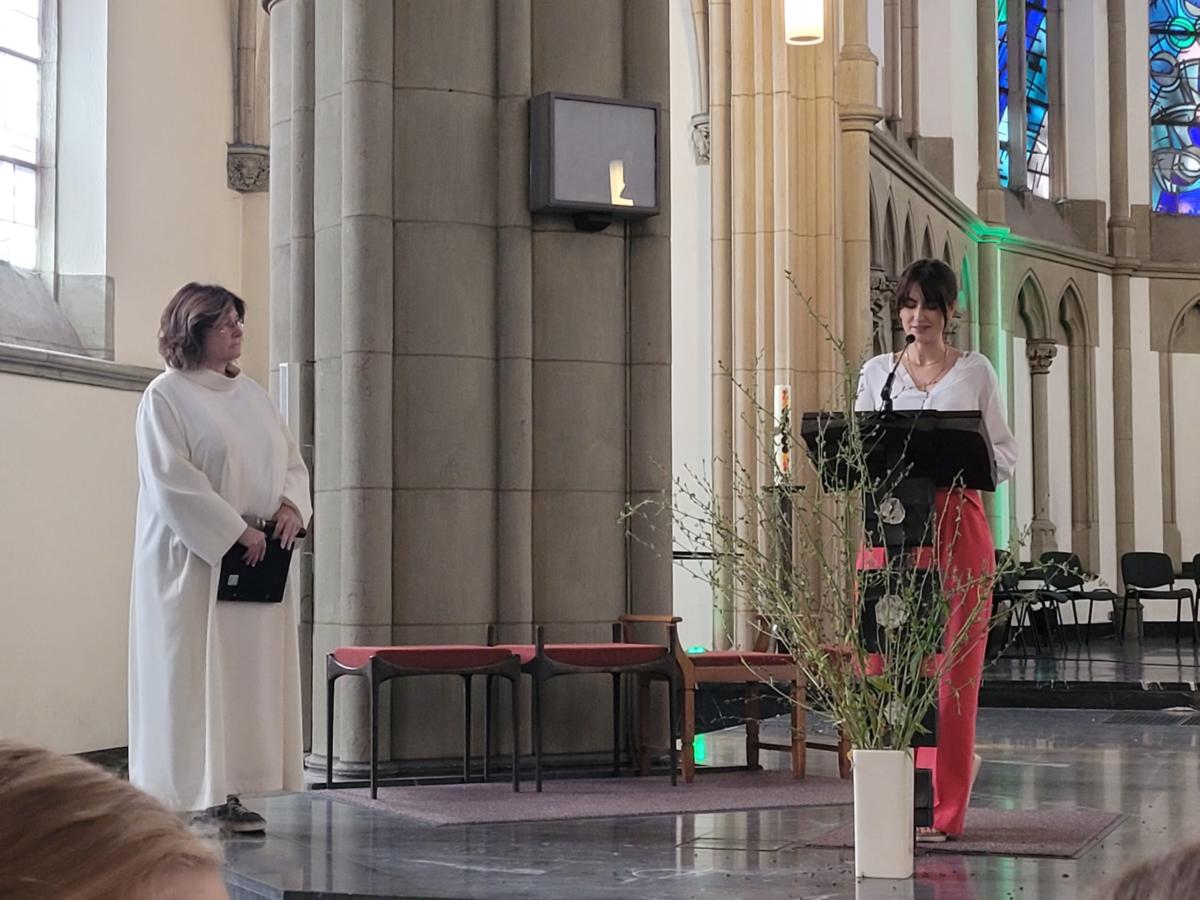 Zunächst Bilder der interreligiösen Feier am Morgen in St.Ludgerus mit Frau JUngsbluth als Zelebrantin, Frau Aksöz – mit vorbereitet von Frau Anacker – und einem tollen Schüler*innenteam am Morgen: