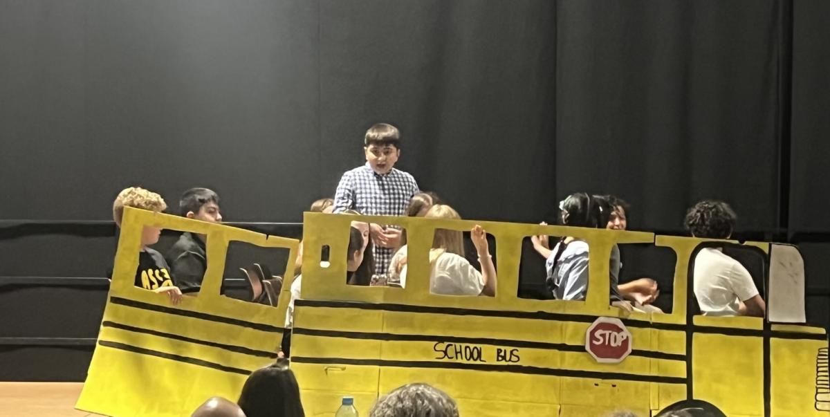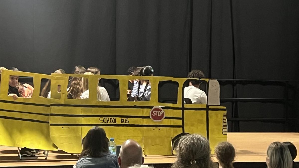 Neben dem Schauspiel wurden auch ein selbst eingeübtes Klavierstück, eigens choreographierte Tanzeinlagen und Requisiten wie ein gebastelter Schulbus in die Aufführungen integriert.