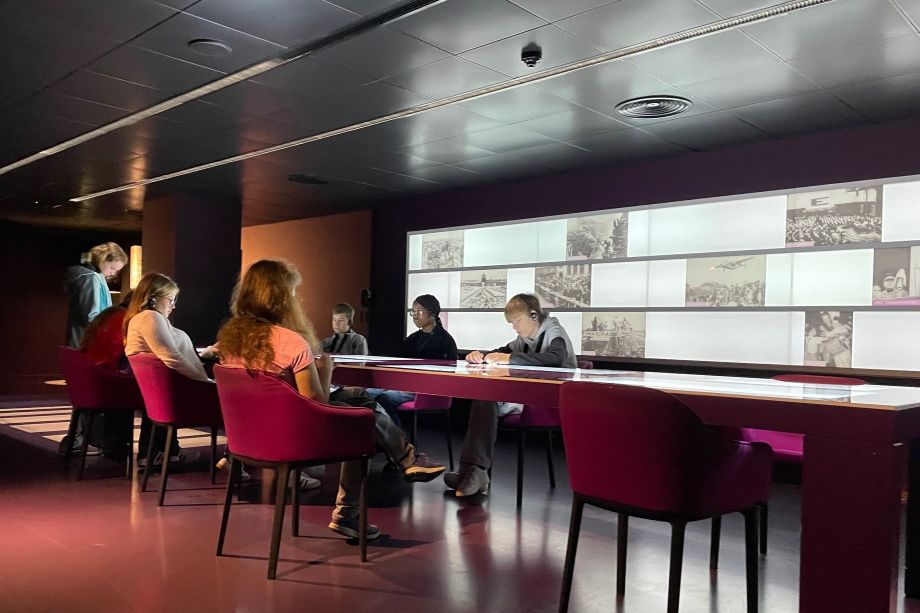 Wir haben einen Workshop zu den Pionieren der EU im Haus der europäischen Geschichte mitgemacht und wurden dazu in zwei Gruppen aufgeteilt. Meine Gruppe ging zuerst nach oben und hat sich ein paar Gegenstände angesehen und dazu 3 Wörter, 2 Sätze und eine Frage aufgeschrieben. Der Guide hat uns anschließend zu den Gegenständen auch die Geschichte erzählt und diese dadurch lebendig gemacht. Danach sind wir nach unten gegangen, wo wir die Köpfe der wichtigsten europäischen Männer, die an der Gründung der EU beteiligt waren, gesehen haben sowie einen Gegenstand zu jeder Person. Diese Leute sollten wir dann beschreiben anhand ihres Aussehens und den Gegenständen. Der Guide hat uns anschließend wieder erklärt, um welche Personen es sich genau handelt und welche Bedeutung der Gegenstand hat. Der Workshop war damit beendet, aber wir durften anschließend mit Tablets und Kopfhörern im Museum herumlaufen und uns die Geschichte ansehen. Dort gabs dann auch eine interaktive Karte, auf der man angeben konnte, in welchem Land z.b. Leute sind, die wir lieben oder wo wir wohnen.