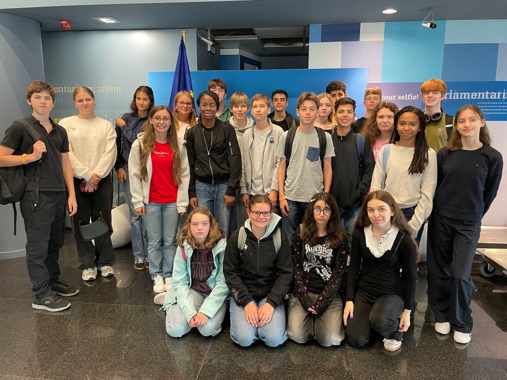 Wir haben zu Beginn Audioguides erhalten und sind mit diesen durch das Parlamentarium gelaufen. An verschiedenen Stationen konnten wir mit unseren Audio-Geräten entscheiden, was genau wir uns zur Entstehung und Geschichte der heutigen EU anhören wollten. Beim Anhören verschiedener interessanter Fakten von der Gründung der EU bis zum Ukrainekrieg, konnten wir uns auf bequeme Sofas setzen, was das Anhören dadurch angenehmer gemacht hat. Das Parlamentarium war schön gestaltet mit vielen abwechslungsreichen Audios, Fotos und Texten und verschiedenen Räumen, unter anderem auch ein großer Raum mit dem Aufbau des echten Parlaments. Kurze Texte und visuelle Modelle haben den Aufenthalt dort sehr angenehm und interessant gemacht. Aus dem 60 minütigen Rundgang im Parlamentarium, haben wir viel Wissen und mehr Freude an Politik mitgenommen.