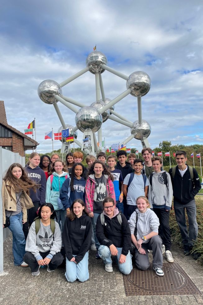 Am Mittwoch haben wir zusammen das weltbekannte Atomium besucht, welches ein Eisenmolekül darstellt . Als erstes sind wir mit dem Aufzug in die höchste Kugel gefahren, während der Fahrt sagte eine Mitarbeiterin wir sollten nach oben gucken und wir verstanden schnell wieso. Oben sah man visuelle Effekte bis wir bei der Aussichtsplattform ankamen. Von ganz oben konnte man fast ganz Brüssel sehen u.a. Mini Europa, ein Stadion und viele Häuser. Danach wollten wir die anderen Kugeln auch entdecken, doch um zu diesen zu kommen, musste man viele Treppen laufen. Ein Teil war wie ein Museum, indem Bilder und Zeitungsartikel über die Geschichte des Atomiums standen, da es 1958 erbaut wurde gab es dort viel zu sehen. In einer weiteren Kugel konnte man sich hinsetzen und eine Lichtershow betrachten. Dann konnte man noch eine Rolltreppe nehmen, die ähnliche visuelle Effekte wie der Aufzug am Anfang hatte. Nachdem wir uns alles angeguckt haben, sind wir die Treppen hinuntergelaufen und haben draußen nochmal dieses Markenzeichen von Brüssel beäugt und viele Fotos gemacht.