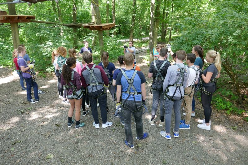 Heute durften wir alle zusammen in der Mensa frühstücken. Das Buffet war vielfältig und lecker. Es herrschte eine gute, aufgeweckte Stimmung, denn alle freuten sich schon auf das Klettern im Hochseilgarten. Zügig nach der Schule ging es dann auch schon zum Tree2Tree. Dort durchliefen wir den Marathon Parcours, der uns herausforderte und auch den ein oder andren Muskelkater verursachte. Es hat riesigen Spaß gemacht und uns alle wiederholt zusammengeschweißt. Nach zwei Stunden sind alle nach Hause gefahren, um dort noch etwas zu Abend zu essen. Außerdem war ich zum Beispiel mit meiner Austauschpartnerin noch im Fitness Center.