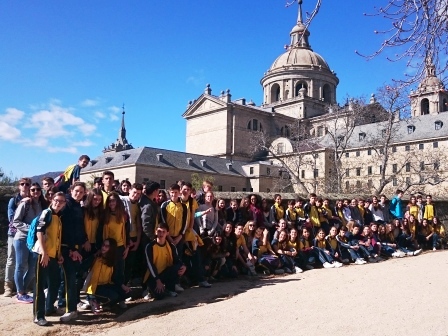 Am Mittwoch-Morgen starteten wir, also 17 Schüler, Frau Spang und Herr Ochoa unseren Spanien-Austausch. Mit dem Flieger in Madrid angekommen erwarteten uns auch schon unsere Gastschüler, mit denen wir dann zur Schule gefahren sind und Unterricht hatten. Da die Schule immer erst um 17:00Uhr endet konnten wir erst dann den Rest der Gastfamilien kennenlernen. Am nächsten Tag machten wir dann einen Ausflug ins Zentrum von Madrid. Dort haben wir uns das Museum „Reina Sofía“, sowie den „Parque Del Buen Retiro“ und andere Sehenswürdigkeiten angeschaut. Die spanischen Schüler haben uns dazu interessante Kurzvorträge vorgestellt. Am Freitag schauten wir uns dann das riesige Schloss „El Escorial“ an. Dann hatten wir unser freies Wochenende. Viele Schüler gingen mit ihren mittlerweile gut befreundeten Austauschschülern in den Freizeitpark oder besuchten noch einmal das Zentrum von Madrid und gingen am Abend typisch spanische Tapas essen.